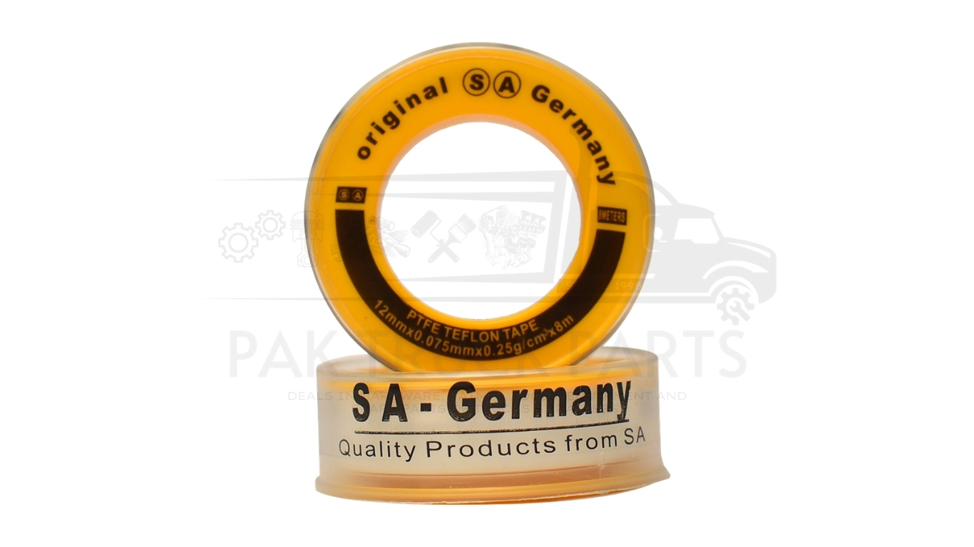 S.A Germany Teflon Tape (100% PTFE) is a high-density, premium thread sealant tape designed for industrial, plumbing, and piping applications to prevent leakage. It features high heat resistance (+370°C), cold resistance (-190°C), and excellent tensile strength, making it durable for sealing pipes and joints.